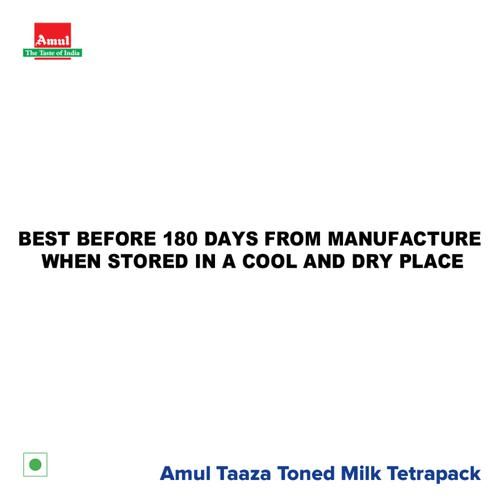 Amul Taaza Homogenized Toned Milk is fully wholesome and entirely luscious. It has a low-fat, low-carb, low-calorie and standard protein content. It continues fresh for 2 days after opening if kept in refrigerator. No water or powder added, no preservative / chemical, easy to carry and use on traveling. It does not have germs as it is pasteurized and therefore hygienic.